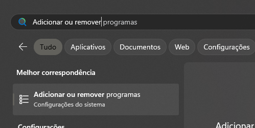 Abra o menu inicial do Windows e pesquise por Adicionar ou Remover programas